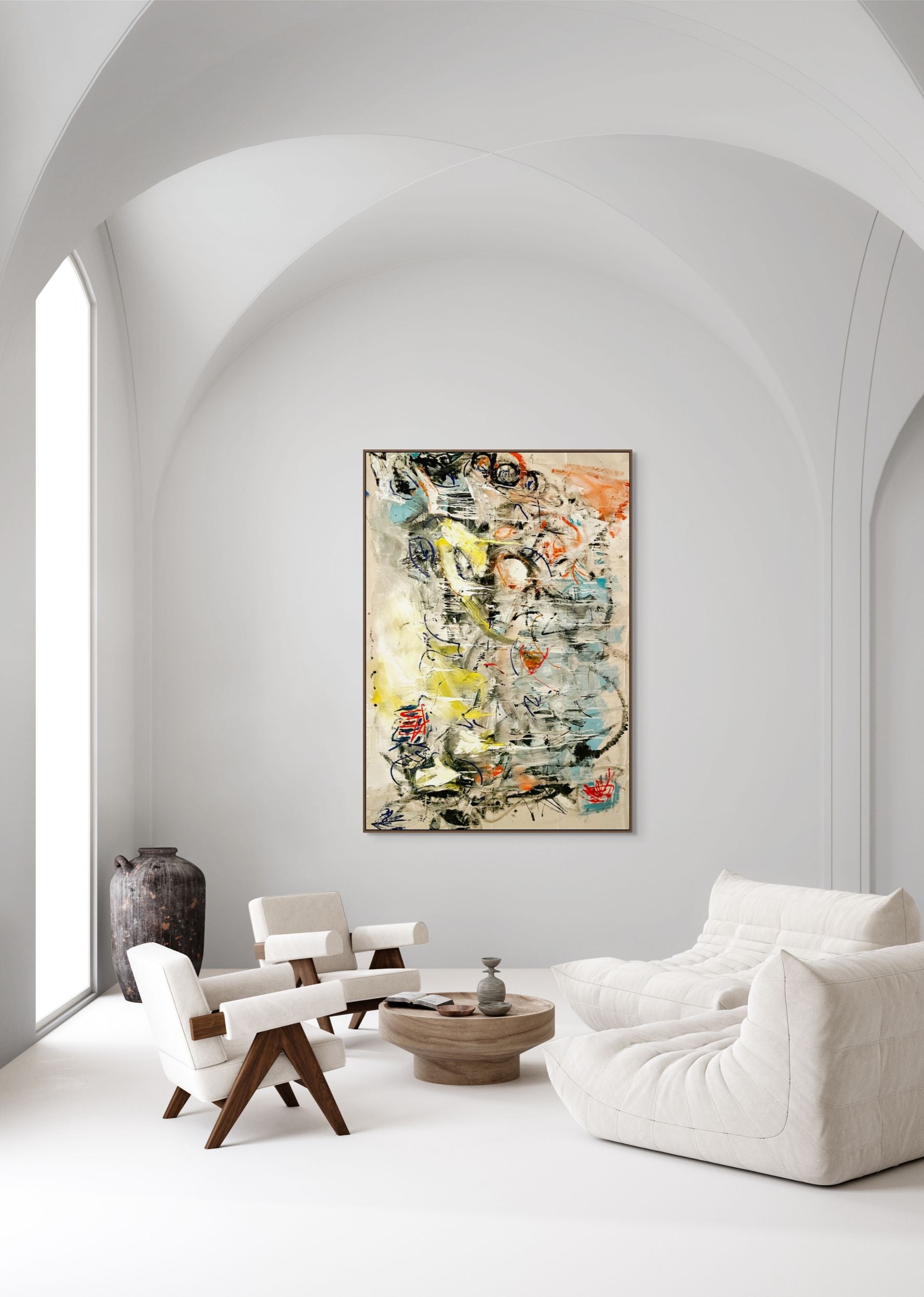 A large-scale abstract painting composed in layered gestures of oil and acrylic. Energetic and tactile mark-making creates a sense of movement, collision, and emotional urgency.