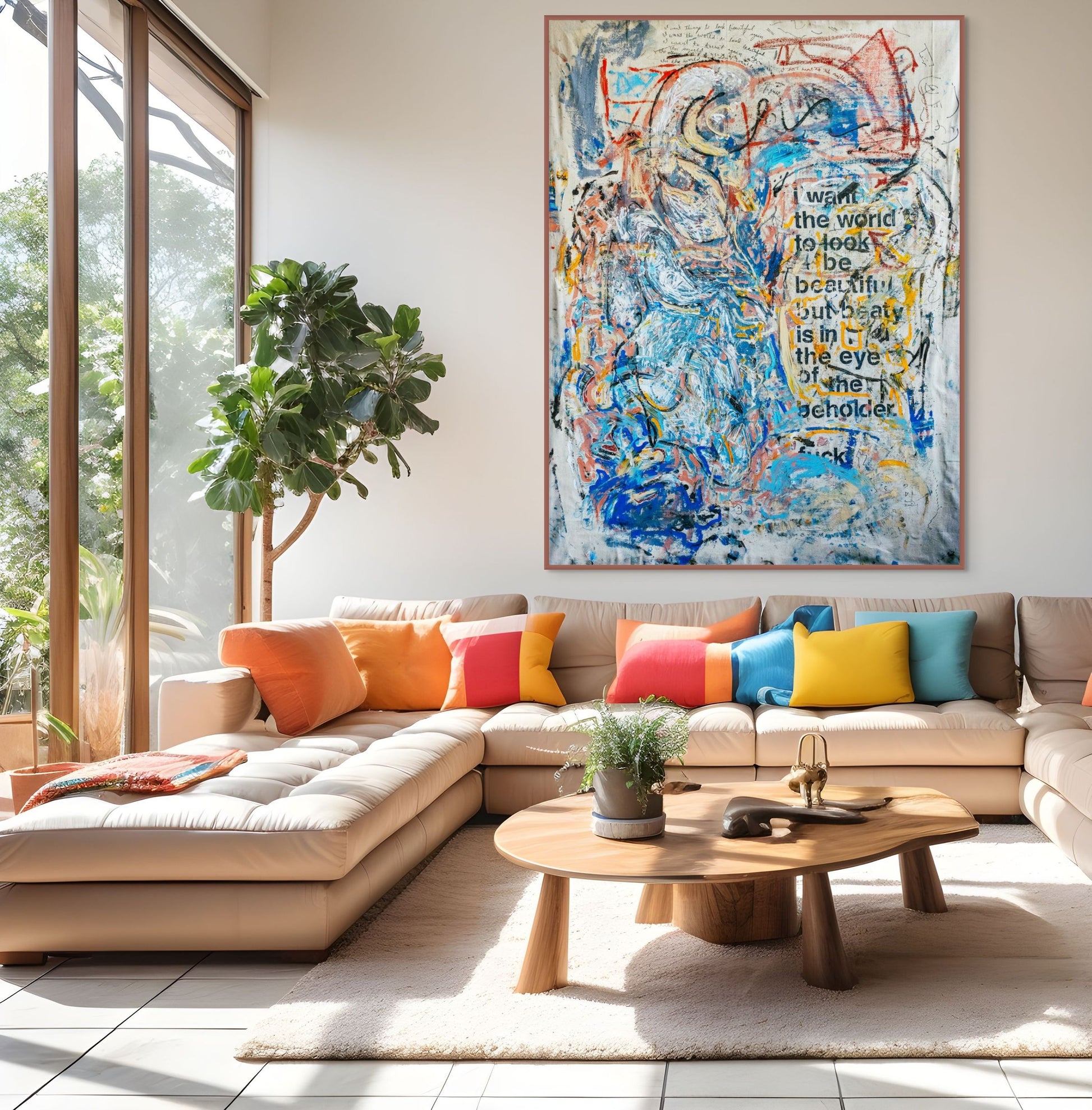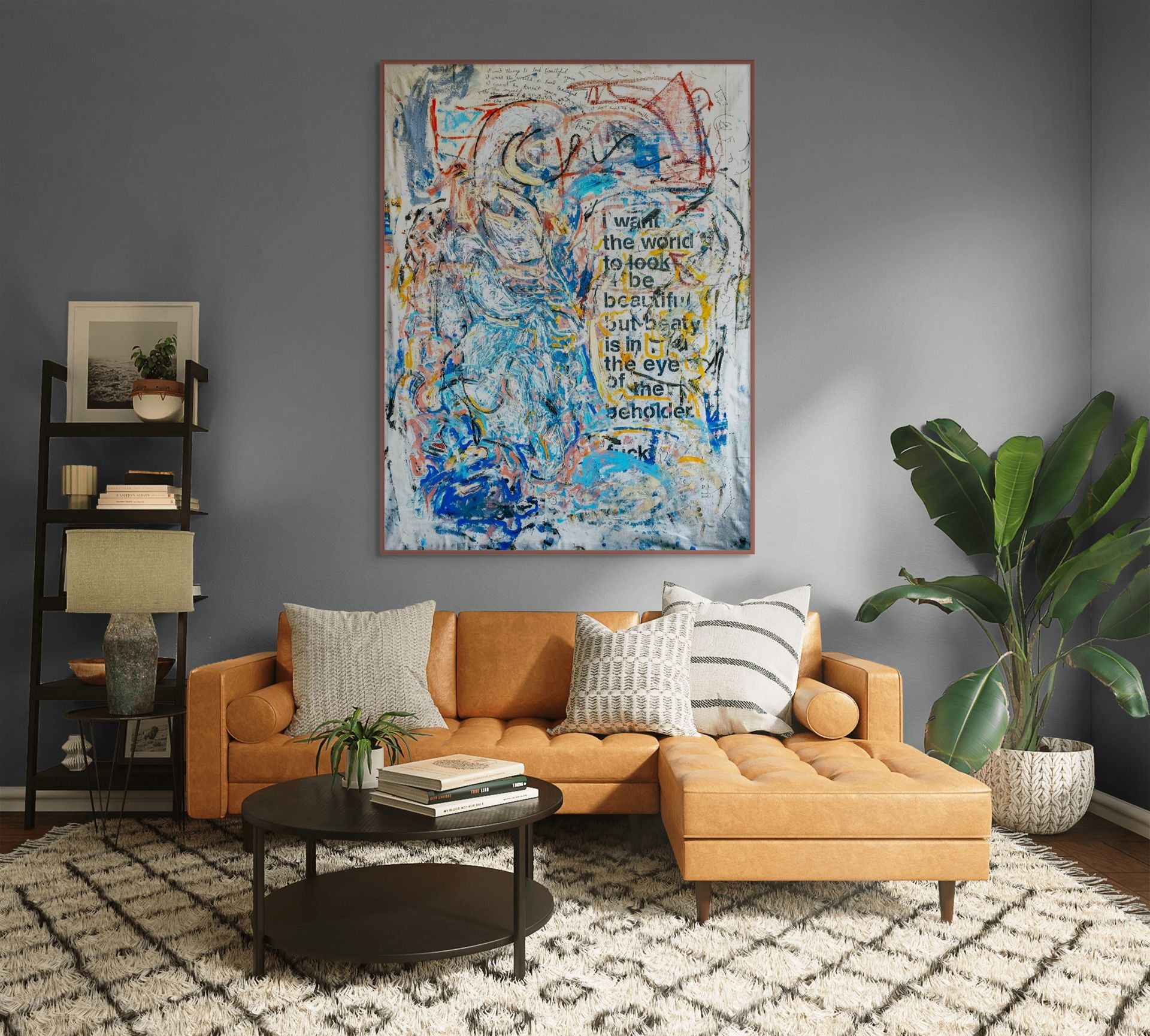 A large-scale abstract painting composed in layered gestures of oil. Energetic and tactile mark-making creates a sense of movement, collision, and emotional urgency.